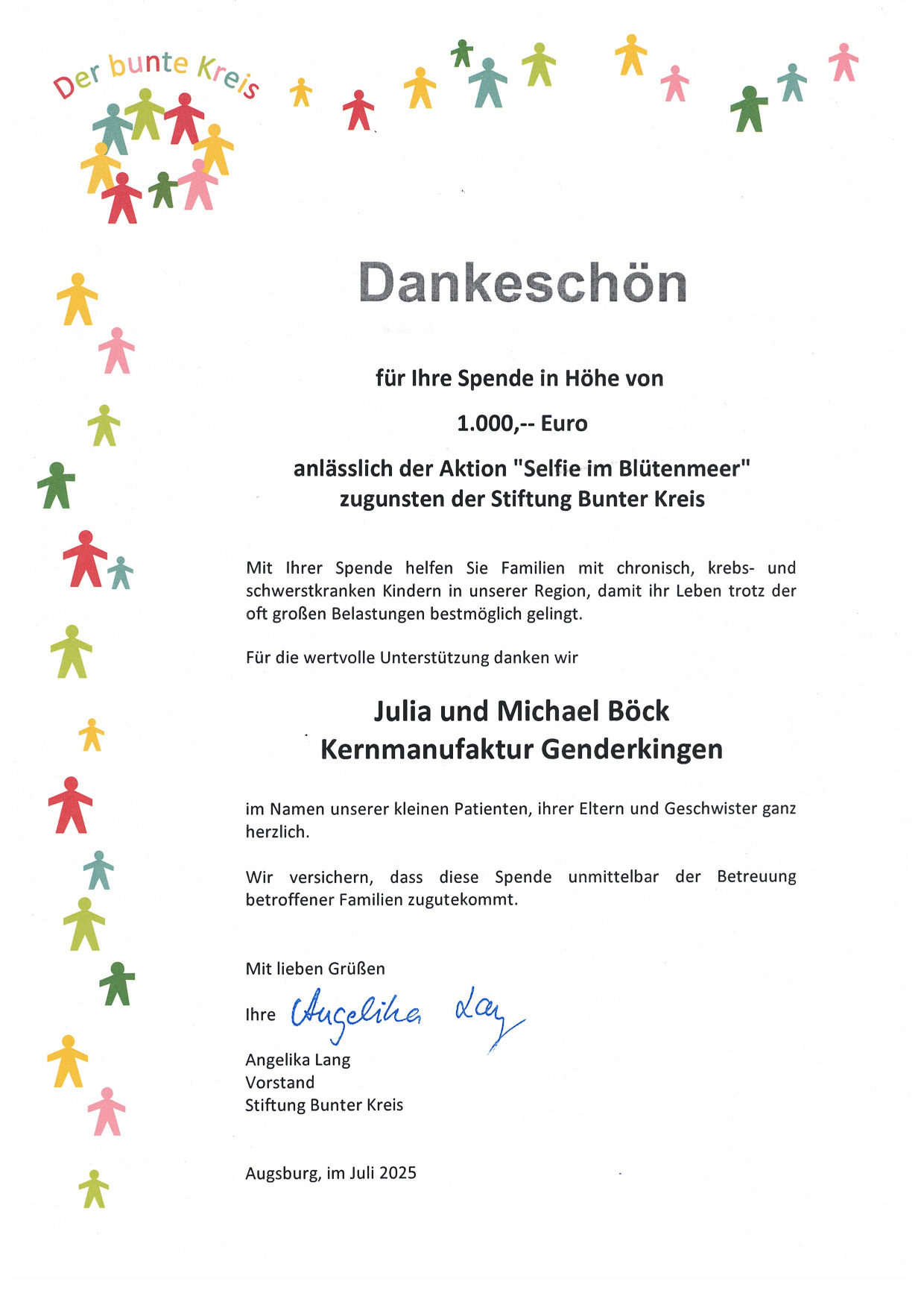 Hinweis: Ihr spendet direkt an den bunten Kreis. Die Kernmanufaktur bietet lediglich den Grund, freut sich aber mächtig ! ;-)